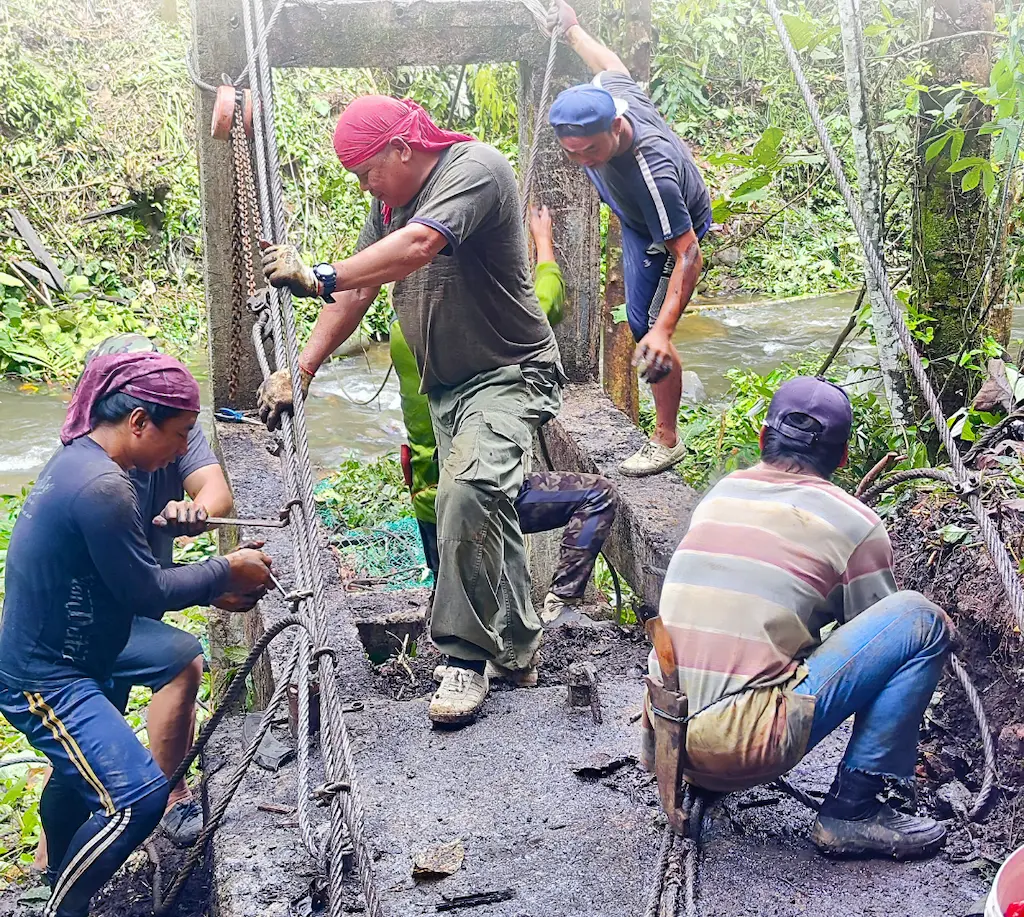 In Kampung Sayap, three vital bridges serving 1,800 villagers are being rebuilt with recycled tyres and reinforced materials. The restored bridges shorten travel by 3 km and ensure safe daily access for schoolchildren and the villagers. Participants also received eco-friendly pencils that grow into plants, symbolising growth and sustainability.